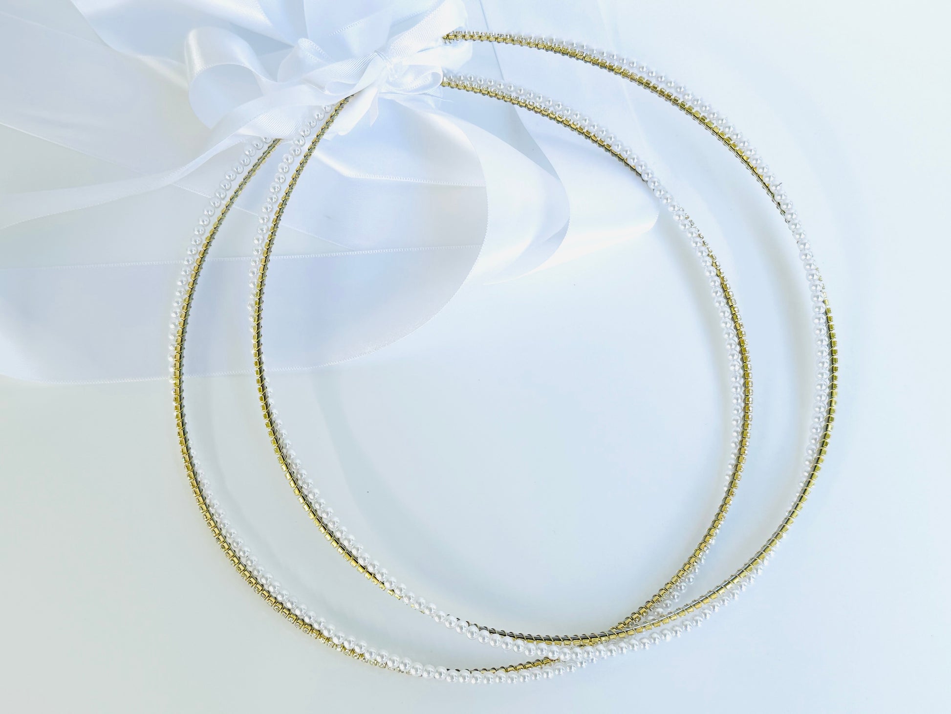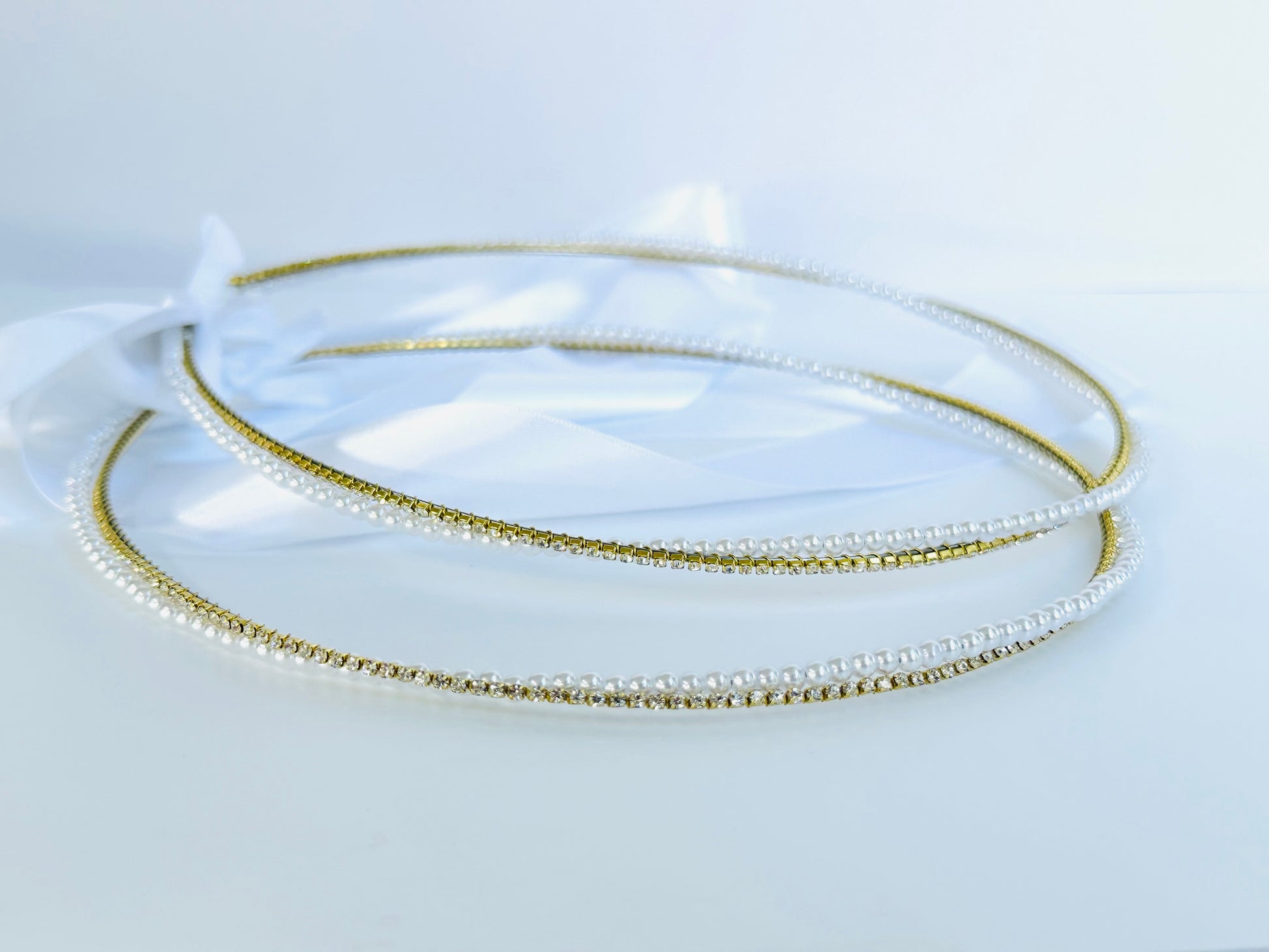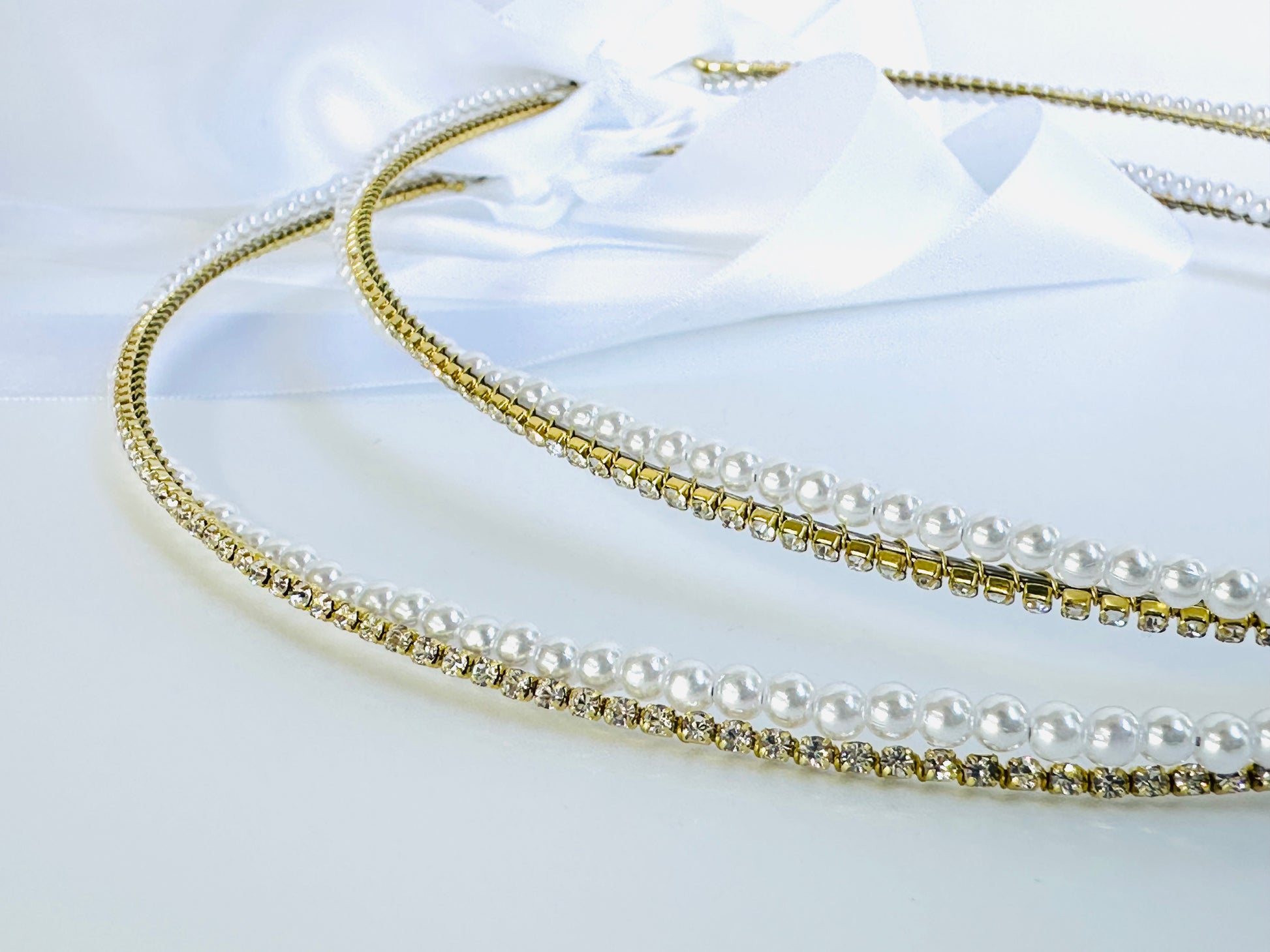 Gold 2mm crystal intertwined with 4mm white pearl bead makes for a touch of class.
